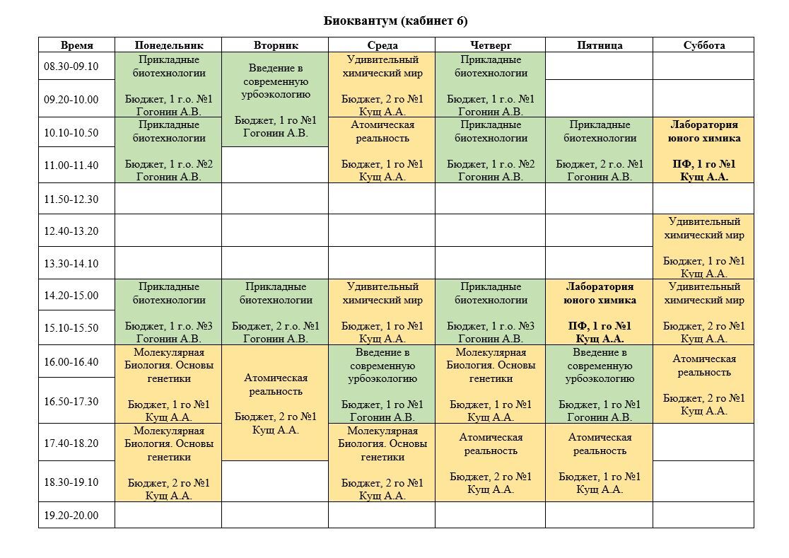 РАСПИСАНИЕ НАПРАВЛЕНИЙ