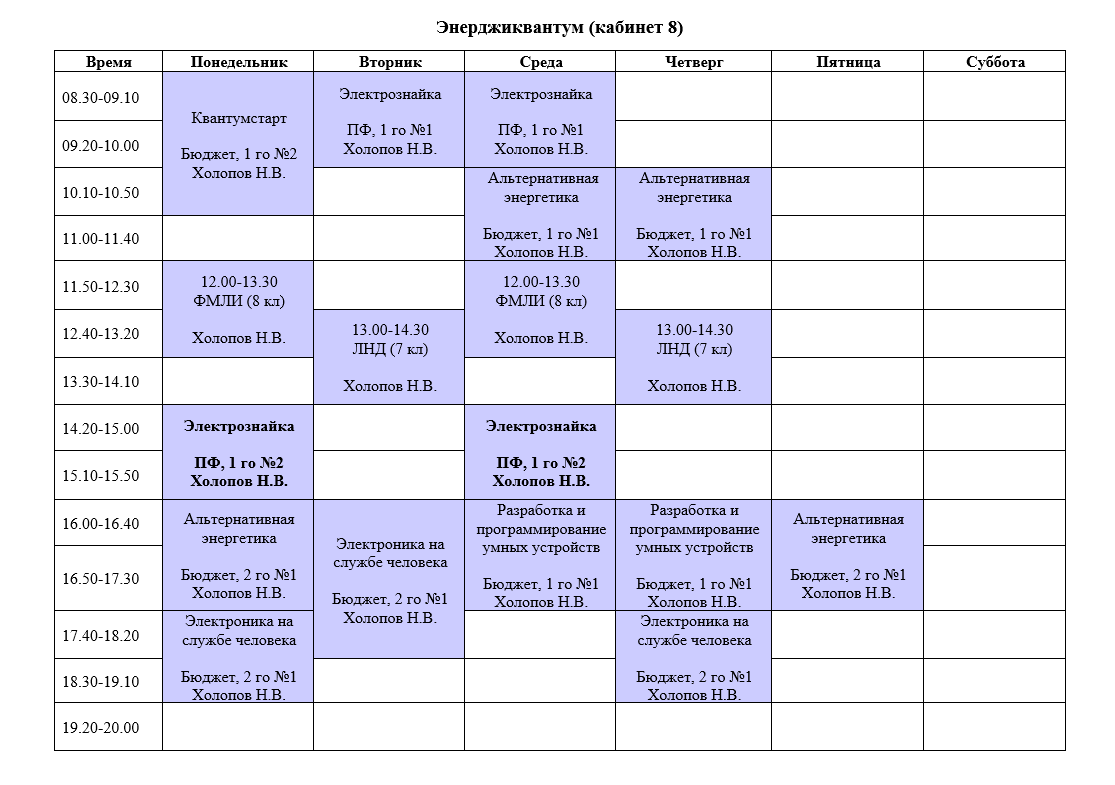 РАСПИСАНИЕ НАПРАВЛЕНИЙ