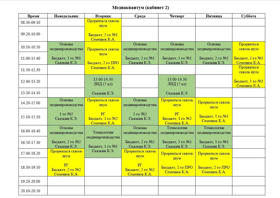 РАСПИСАНИЕ НАПРАВЛЕНИЙ